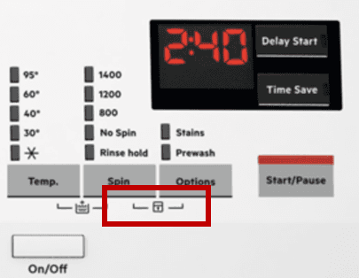 Az opció be-/kikapcsolásához tartsa lenyomva a Foltok/Előmosás gombot, amíg a lakat ikon ki nem gyullad/el nem alszik a kijelzőn.