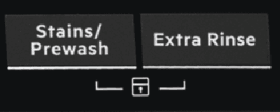Az opció aktiválásához nyomja meg és tartsa lenyomva a Foltok/Előmosás és az Extra öblítés gombot 5 másodpercig, amíg a lakat meg nem jelenik a LED-kijelzőn.
